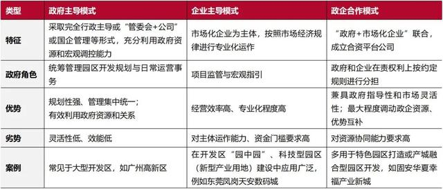 表2:三大类园区开发运营模式比较
