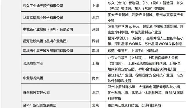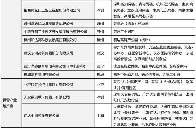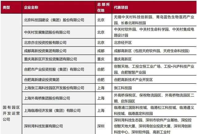 附录1 代表性产业园开发运营企业