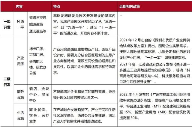 表4:综合开发趋势下产业园项目的主要建设内容