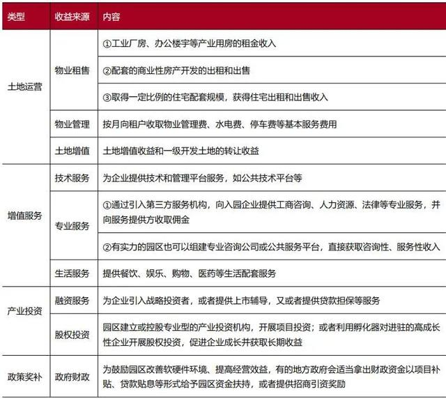 表5:产业园的多元化组合式收入来源