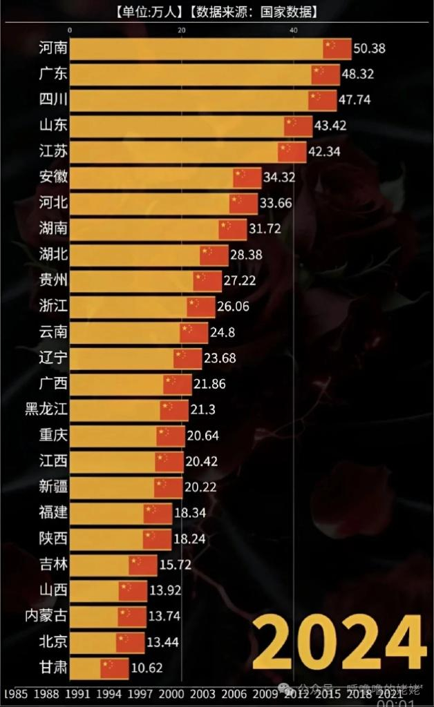 - 2024年:河南(50.38万)、广东(48.32万)、四川(47.74万)三足鼎立。