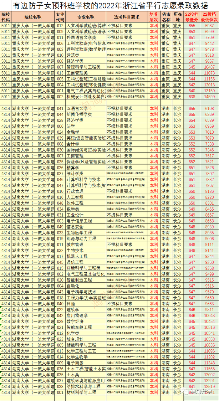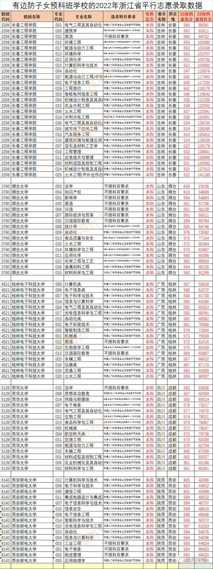 有边防军人子女预科班招生的7所高校,2022年在浙江省平行志愿录取情况怎样?一下数据跟您参考。