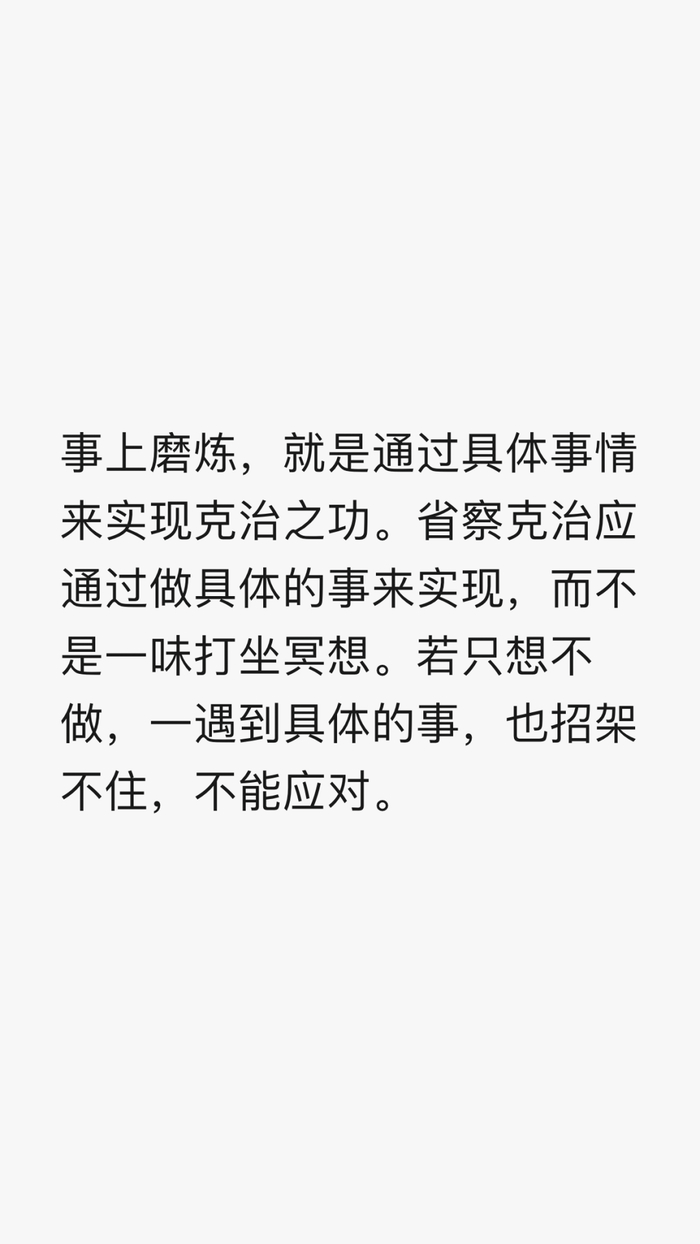 9、是徒知静养而不用克己工夫也。人须在事上磨,方立得住,方能“静亦定,动亦定”。