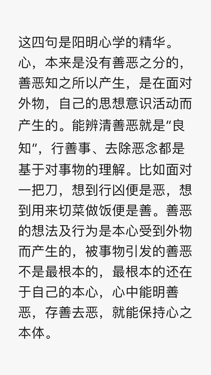 3、 无善无恶事是心之体,有善有恶是意之动,知善知恶是良知,为善去恶是格物。