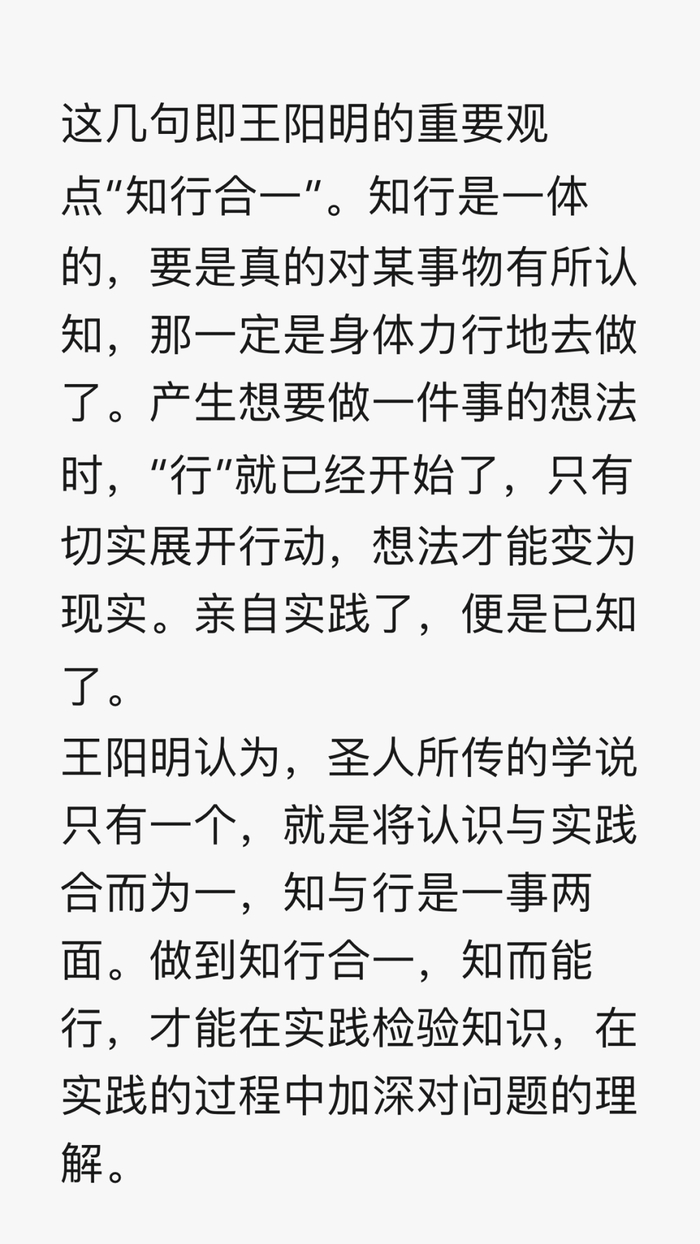 6、知之真切笃实处,即是行;行之明觉精察处,即是知:知行工夫本不可离。