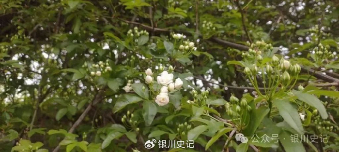 白色瀑布一样的白色七里香花,整个屋子,整个园子,方圆几里都是花香。出屋进屋都需俯身在白色花丛中低头前行。花香沁人心脾,仿佛置身仙境。