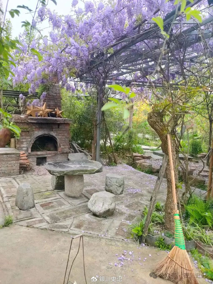 紫藤花对面是个砖头砌的烤火炉,夜晚炉火映照着我和李哥的脸庞,温暖而亲切。李哥讲述着娜芽的点滴往事,笑声与火焰交织,驱散了初春夜的冷意。