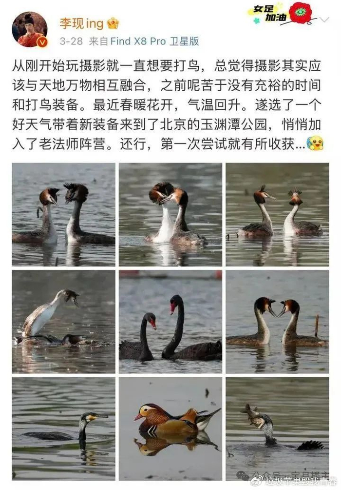 先说李现这事儿,人家三年如一日资助观鸟协会,用特批设备拍鸟是为了科研,NFT 收益全捐给青海湖护斑头雁,这叫什么?这叫爷们儿担当!可就有那帮老流氓,端着个二手单反就敢喷 "摆拍作秀",您瞅瞅人家镜头里的绿头鸭踩背、夜鹭捕鱼,哪帧不是讲究个静气?您扛着超市买的面包片儿喂鸳鸯,拍出来的照片糊得跟马蜂窝似的,还有脸瞎咧咧?