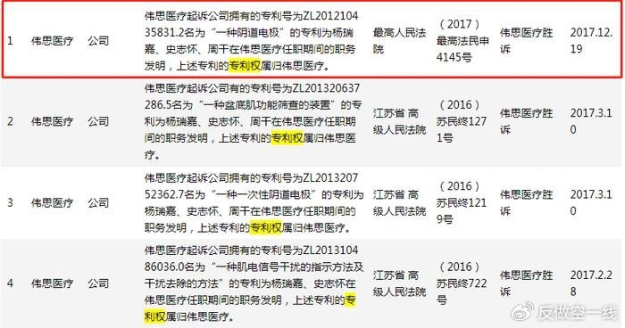 高层纷纷离职后,伟思医疗这时才意识到问题,并因专利权属纠纷多次与麦澜德对簿公堂。部分诉讼以麦澜德败诉或伟思医疗撤诉告终。其中,一项“阴道电极”发明专利被申诉至最高法院,最终被认定为伟思医疗的职务发明。