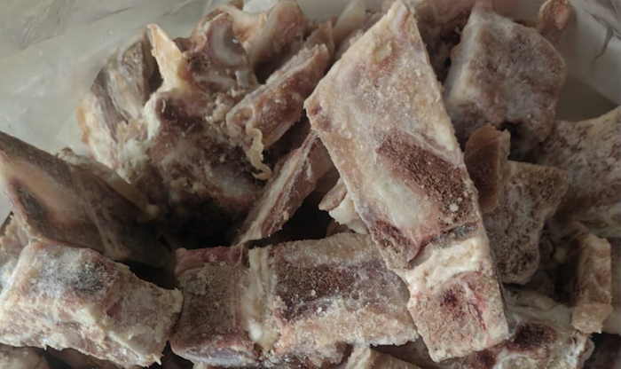 到货后,李先生怀着忐忑的心情开了箱,突然发现他收到了根本不是什么排骨,而是一堆挂着零星腐肉的发黑发白碎骨,浓烈的汽油味扑面而来。这堆骨头根本看不出具体的年代,因为李先生过去曾经发现,超市里的古董肉往往是发白的,而被污染的肉是发黑的。李先生决定,详见此包骨头放冰箱,然后再打电话确认一下究竟是什么环节出了问题。