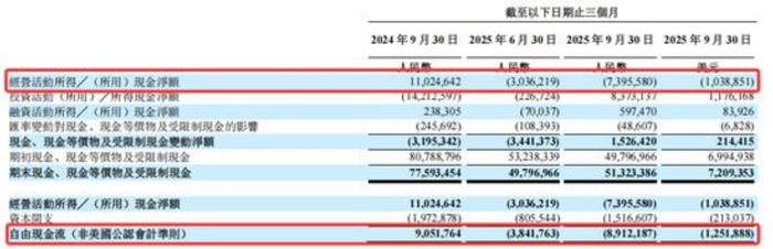 但2025年第三季度,公司经营活动所用净现金74亿元,由2024年同期净流入110亿元转为净流出,环比较第二季度30亿元净流出进一步扩大。自由现金流缺口降至-89亿元,由2024年同期净流入91亿元转为净流出,环比较第二季度的-38亿元缺口扩大134%。