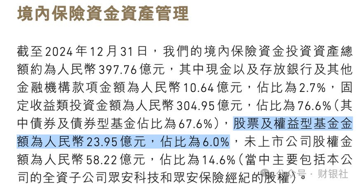 这种收益结构暴露两个关键问题:其一,承保业务对投资收入的过度依赖,实质弱化了保险主业的抗周期能力,当年保险分部实际承保利润为-7.51亿元(投资收益覆盖后账面盈利5.88亿元),这种"投资补承保"的模式在资本市场波动期具有极大脆弱性;其二,固收类资产占比76.6%,其中AAA级债券占比降至79.6%,在利率下行周期中面临再投资风险与信用风险的双重挤压。