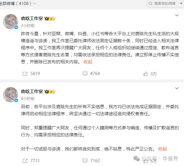 硬刚到底!鹿晗工作室连发两条声明,维权态度零含糊