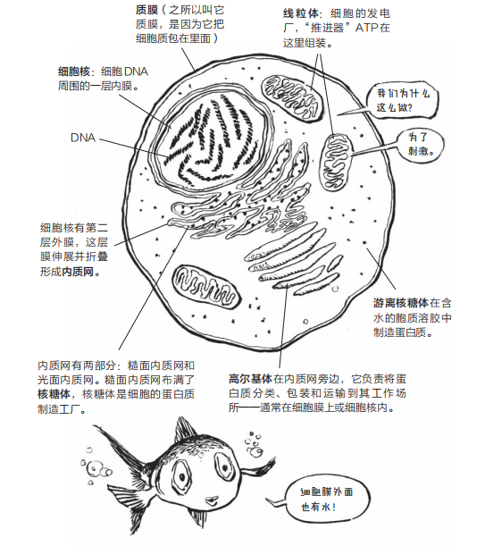 讲到真核生物,他通过平面漫画带我们进入想象,将线粒体比作“发电厂”,线粒体的作用变得通俗易懂起来。