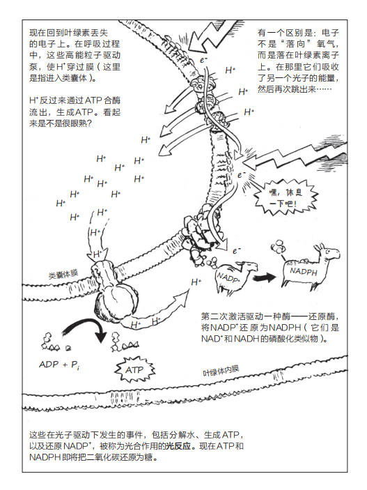 植物是如何捕获“光”的?在分析植物光合作用时,他将“叶绿素”描述为“锅”,一端似“锅柄”插在类囊体,另一端像“锅”用来捕捉光子,通过系列漫画逐步拆解,让植物细胞每个结构在光合作用中的用处清晰表示。