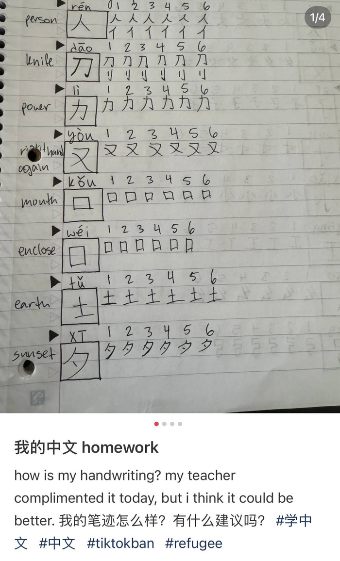 汉娜告诉记者,她今年18岁,在美国Georgia Institute of Technology(佐治亚理工学院)主修生物学,辅修中文。她还在平台上晒出了自己的中文作业,让中国的网友帮忙看看“我的笔迹怎么样?有什么建议吗?”汉娜表示,中国网友对她学习中文的帮助很大,也收获了不少中国网民友好和鼓励的评论,“大家非常的友善和乐于助人”。