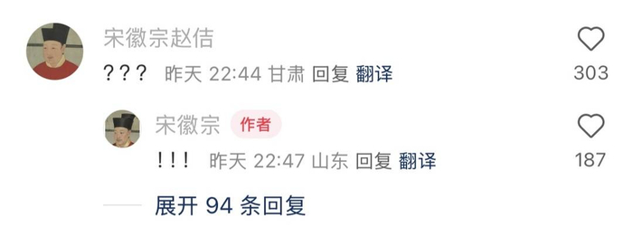 在这位“宋徽宗”打招呼的帖子下,不少网友互动。一个名叫“宋徽宗赵佶”,头像同样是宋徽宗画像的账号,也在帖子下留言,看热闹的网友们不停询问“谁是真的”,而两位“宋徽宗”还相互关注了。