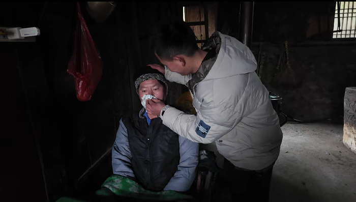 文阿俊照顾病重的父亲。彭水县融媒体中心供图手足无措之下,文金华夫妻找到了当地的赤脚医生尝试起所谓的“偏方治疗”。结果可想而知,“偏方”对文金华的病情并不起任何作用。