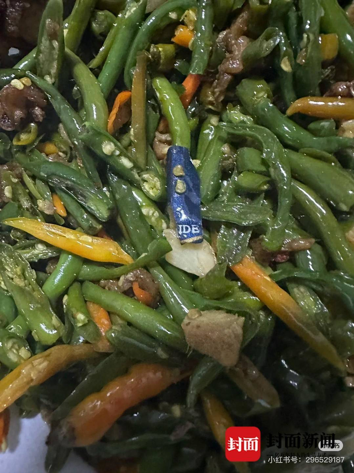 “我吃到一半,发现一个蓝色的有点油亮的东西,我开始还以为是海椒皮皮想挑出去,结果夹起来看了一下是个烟头!”李女士自称,3月8号下午,她点了尖椒鸡外卖,这家店是她第二次点。