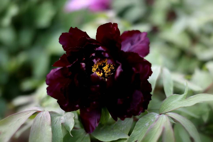 “这是我们的新品种,叫‘初乌’,是黑牡丹品种中最黑的一种。”张铁建介绍,“初乌”花朵易吸收太阳光导致受到灼伤,养护成本较高,在自然界中较为罕见。园区里的“初乌”,是技术工人嫁接得来,不多,很珍贵,游客观赏后都称“有别样的雍容魅力”。