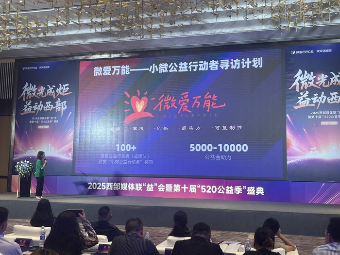 为了持续挖掘、助力草根公益行动者,5月20日,在2025西部媒体联“益”会暨第十届“520公益季”活动现场,阿里巴巴公益联合13家媒体代表共同启动了“微爱万能·小微公益行动者寻访计划”。