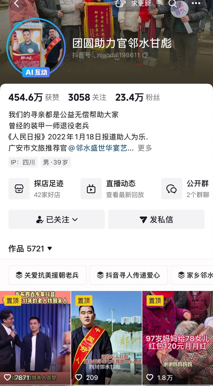 时间来到2019年2月,一个外地号码打到甘彪手机上。对方声音发颤,“视频里是我叔,走失十多年了。”