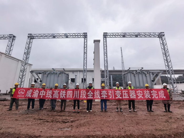 1月7日,记者从长江沿岸铁路集团四川有限公司获悉,近日,随着最后一台重达39.6吨的牵引变压器在四川资阳市乐至县文峰东路乐至牵引变电所平稳就位,成渝中线高铁四川段全线牵引变压器安装完成,为后续变电所设备安装、调试工作以及全线电力牵引供电系统成型奠定了基础,向联调联试目标迈出关键一步。