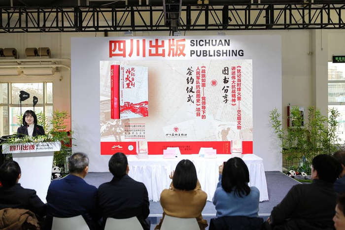 1月9日上午,《犹记当时烽火里——80组文物讲述伟大抗战精神》图书分享会暨《战旗如画》项目签约仪式,在2026北京图书订货会四川展区举行。