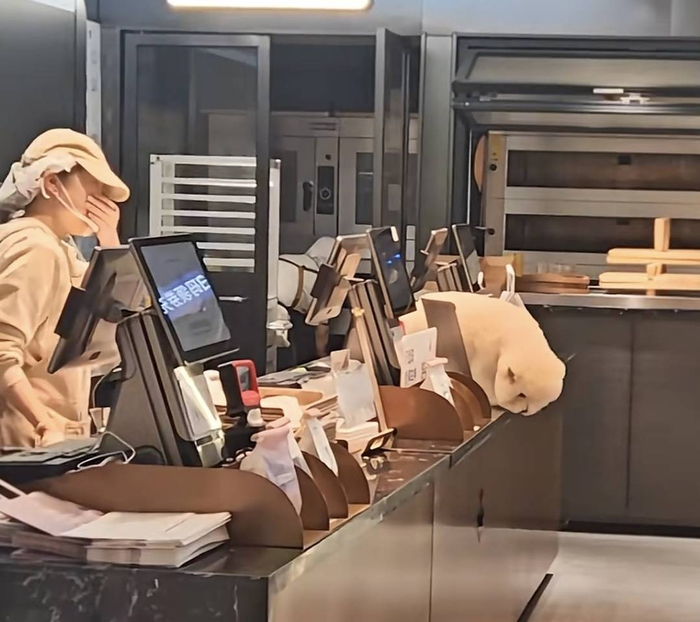 她说,事发1月4日,当时一名男性顾客提着很多东西抱着宠物狗来到店里柜台前,问店员是否可以放一下,店员以为是放包之类的物品,就同意了,没想到该顾客就把宠物狗放台面上了。