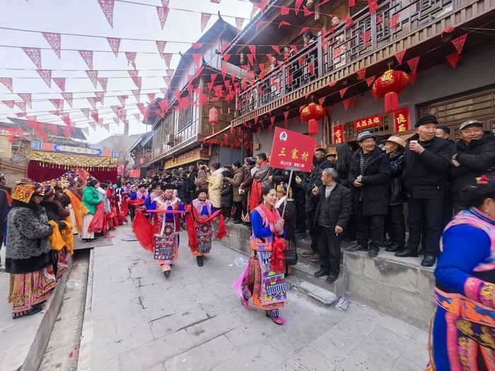 当日清晨,太阳刚刚爬上山头,舞龙舞狮队便从镇政府一路欢腾到宁江门,穿藏装、披羌绣的巡游队伍成街头焦点,引得沿途群众纷纷举起手机记录。