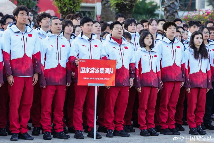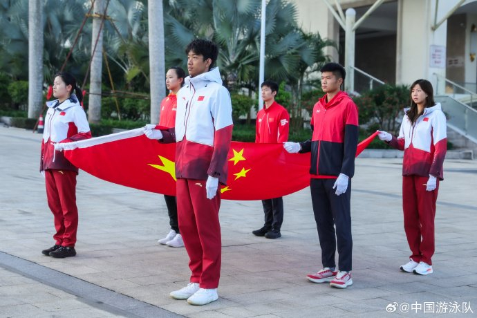 @中国游泳队 发博:2026年第一天,国家游泳集训队在海南白沙基地,迎着新年朝阳参加庄严的升旗仪式。以国旗为证,以碧波为约,新的一年,伴国旗启航。