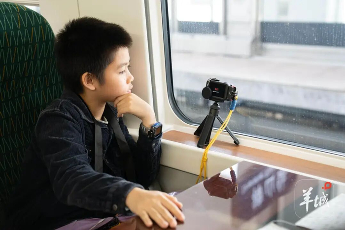 城轨列车内,小“地铁迷”正在接受媒体采访