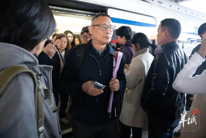 乘客周女士从江高站乘坐新开的广清城际南延线到达广州白云站,准备乘坐高铁去湛江。“听说今天城际新线开通,我昨天晚上就买了票,约12分钟就可以直达广州白云站坐高铁,花费5元,方便、便宜。”