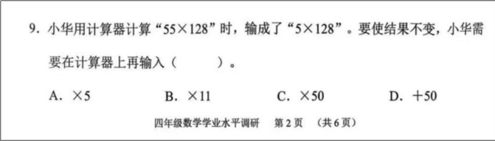 传统教学注重直接计算“55×128”的结果,考查计算熟练度。