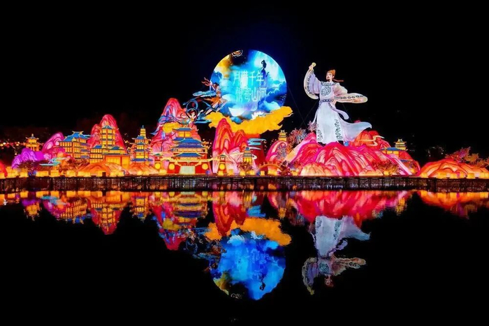 本次灯会展区面积较大,设有2.5公里赏灯动线,分为五大主题展区,包括“星河驰骋·骏马腾云”“绿野仙踪·生态和鸣”“逍遥天地·数智未来”“千年一梦・烟火人间”以及“同根同源·湾区和韵”。展区融合传统彩灯与现代科技,呈现兼具观赏性与娱乐性的灯组。