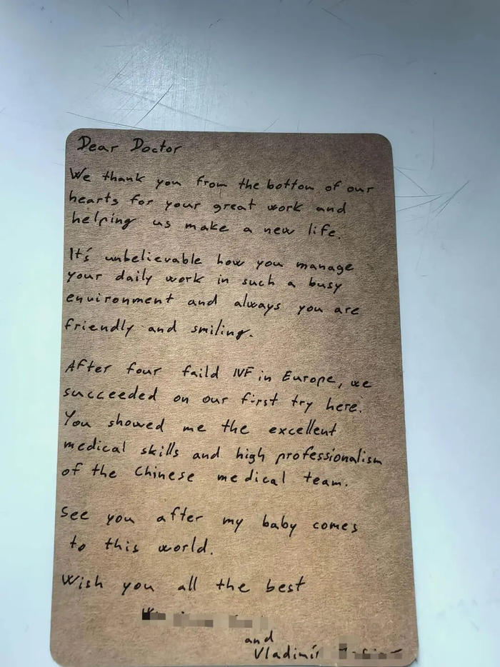 “It's unbelievable. After four failed IVF(试管婴儿) in Europe, we succeeded on our first try here.”