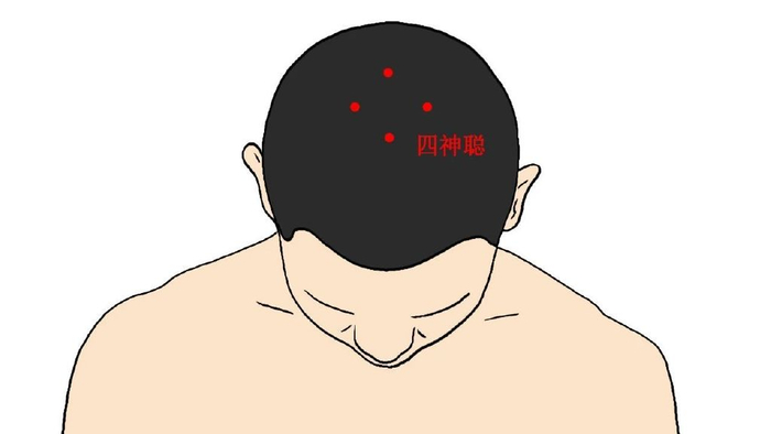 这个穴位里面带“神”和带“聪”两个字,神指的是神志,聪可以理解为聪明,《太平圣惠方》载“神聪四穴,理头目眩,狂乱疯痫,针入三分”。这个穴位在人的头顶,位于百会穴(距离前发际线5寸——大概10cm的位置)的前后左右各旁开1寸,它常用来治疗头痛、眩晕、失眠、健忘、癫痫等神志病。