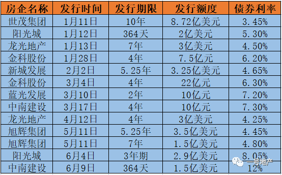 6月10日,中南建设(000961.sz)发布了一则公告,称公司境外全资子公司完成了一笔1.5亿美元高级无抵押定息债券的发行,债券期限364天,票面利率12.00%。