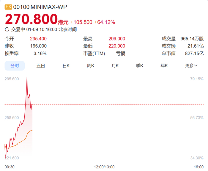2026年1月9日,港交所的铜锣为MiniMax而鸣,市值超800亿港元。