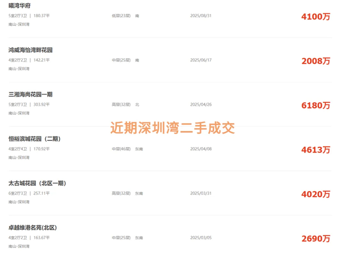 除了深圳湾二手豪宅价格贵,其他后海楼盘可都没那么贵呀。4000万以上打新顶级豪宅,4000万以上二手淘淘金。各自安好。