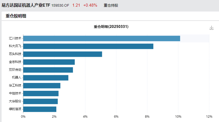 顺着大摩报告的思路,目前国内机器人核心组件具有优势的领域是传感器、视觉系统、电机和减速器领域,符合这类别的公司在机器人ETF易方达(159530)都有覆盖,这只ETF跟踪的是国证机器人产业指数,该指数经过今年4月的修订,目前人形机器人占比更高,弹性也更佳。