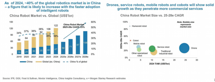 大摩预计机器人行业规模的复合增长率将达到23%,市场规模到2028年达到1080亿美元。