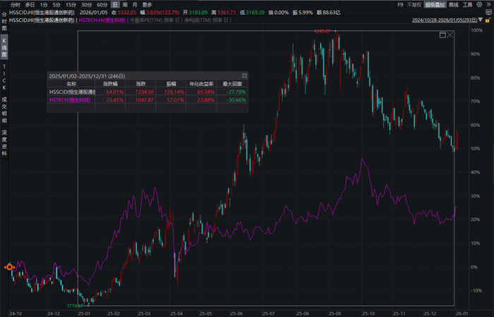 2025年,恒生港股通创新药指数的涨幅为64%,远跑赢回报只有23%的恒生科技指数。
