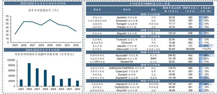 由于全球传统重磅畅销药增长放缓,跨国药企在2025-2032年间,有大量的专利药品将要到期,急需收购优质的管线来补强自身的收入多元化。