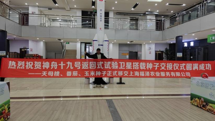 值得关注的是,就在2024年,王卫国获得开展航天育种的新机遇.神舟十九号返回式试验卫星搭载了天母桃、番茄、水果玉米种子。他积极与航天部门合作.密切关注种子在太空的动态。在种子返回地面后.他立即开展培育研究.在实验田中严格控制环境条件.对比与普通种子的牛长差异。目前.发现部分种子发芽率低.已对士壤酸碱度、肥力状况、光照时长、温度湿度等影响因素,成功提高种子发芽率.为后续培育工作奠定基础。航天育种从天母带去又返回,也是把桃种子带到太空全国第一人。