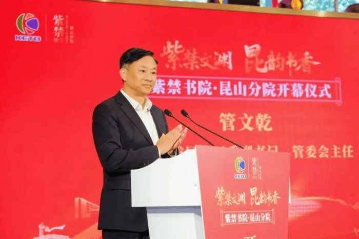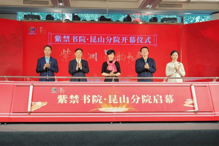 2025 年 12 月 16 日上午,紫禁书院・昆山分院开业仪式在昆山市开发区科创金融街 E 座一楼举行。故宫博物院党委委员、故宫出版社社长果美侠,故宫出版社副总编辑王志伟,故宫出版社紫禁书院负责人何蕊,昆山市委常委、开发区党工委书记秦微晰,昆山开发区党工委副书记、管委会主任管文乾,中逸集团董事长庄春强及昆山市各级单位领导,文化界代表,媒体代表等嘉宾出席。