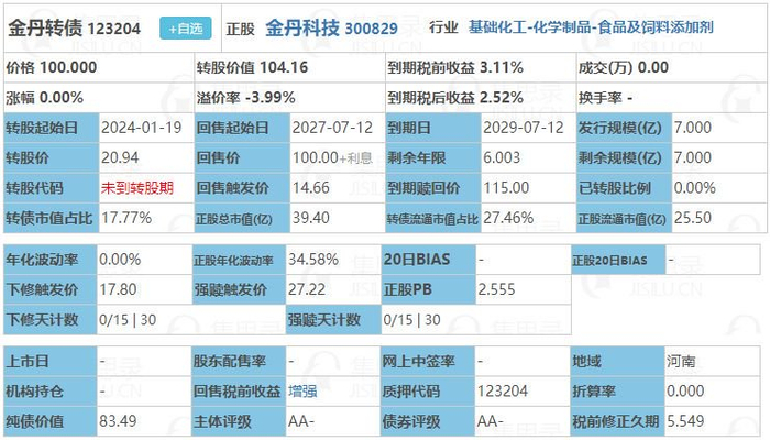 丨金丹转债