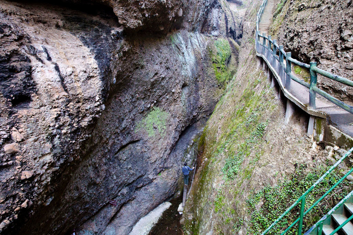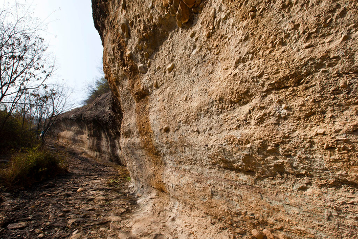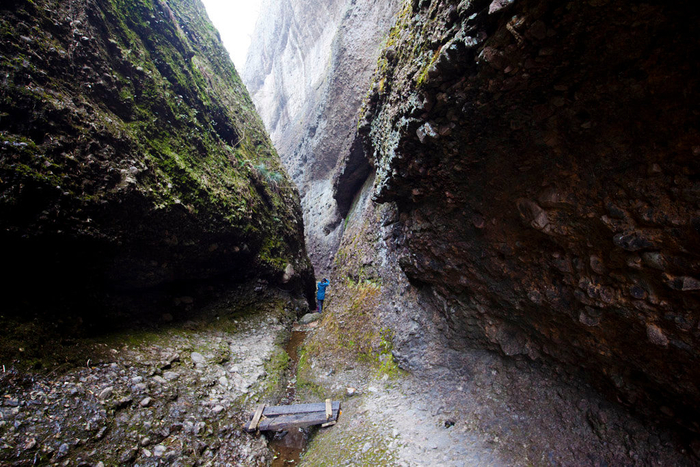 皖西大裂谷称得上是中国版的“东非大裂谷”,巍峨的大别山山脉在这里被从中横劈成为两半,巍峨的峭壁对峙相望,形成一条狭长的“V”字形裂谷,中间是一条长约二公里,仅够一人侧身前行的蜿蜒崎岖的裂缝小道。