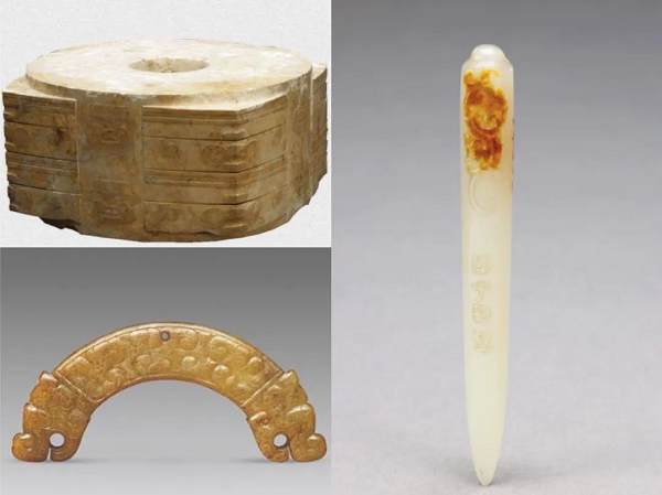 ▲ 玉琮王 良渚文化 (左上)▲ 玉龙首璜 春秋战国 (左下)