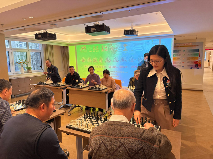 11月26日,国际象棋全民健身志愿服务(“四进”活动)在泰康之家·和平府成功举办。北京大学教师、女子世界冠军、女子世界排名第一侯逸凡,国际象棋女子特级大师、男子国际大师、北京队队员兼教练员王瑜应邀出席,与到场的长辈们一起体验国际象棋的奥妙。